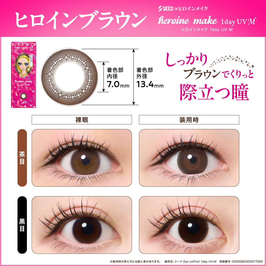 ヒロインメイクの着色部の外径は13.4mmと大きめ。派手すぎない色合いなので自然と瞳になじみます。まるで少女漫画のヒロインのような輝く瞳を、あなたに・・・
