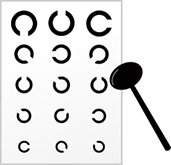 円形の一部分だけ空いた英文字の「C」のような形状を用いて、視力を確かめます。上・下・右・左・斜め右下など、円形の空いている箇所を答えることで、どこまで小さなものが見えるのかを検査する方法です。